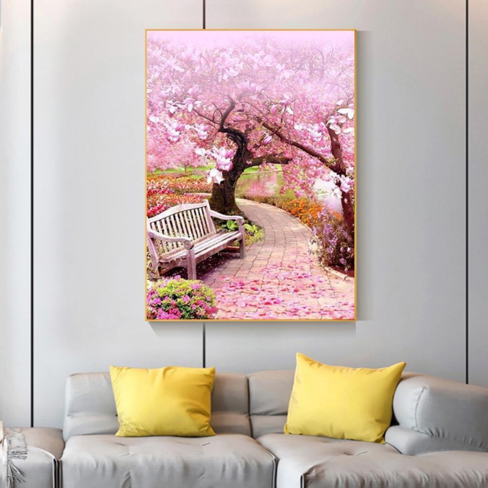 Full Square Drill 5D DIY Diamond Painting Cherry Blossom Chair Embroidery Cross Stitch Rhinestones Needlework Crafts Art Pictures Mosaic Kits Home Decoration