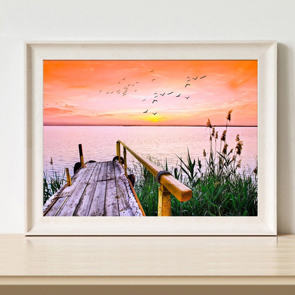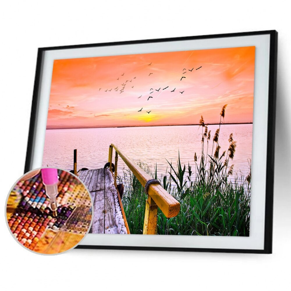 Dusk Coast Picture 40x30cm 5D DIY Full Round Drill Diamond Painting Handmade Rhinestones Mosaic Wall Craft Kits Gift Home Decor