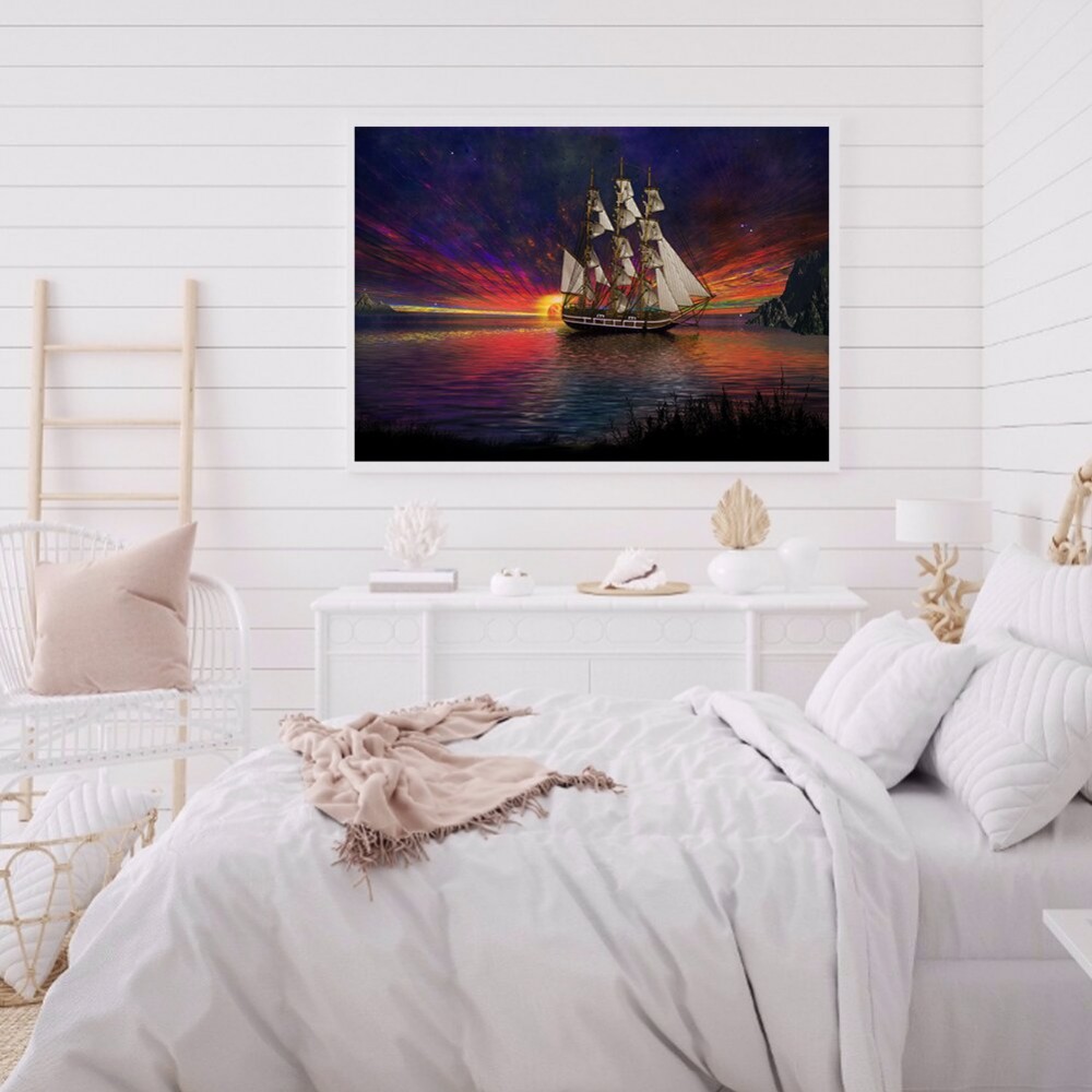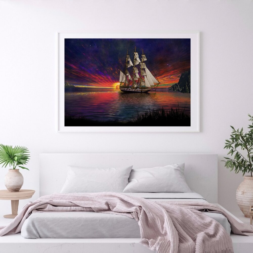Full Round Drill 5D Rhinestone Picture DIY Fantasy Ship Mosaic Diamond Painting Craft Poster Home Wall Decor