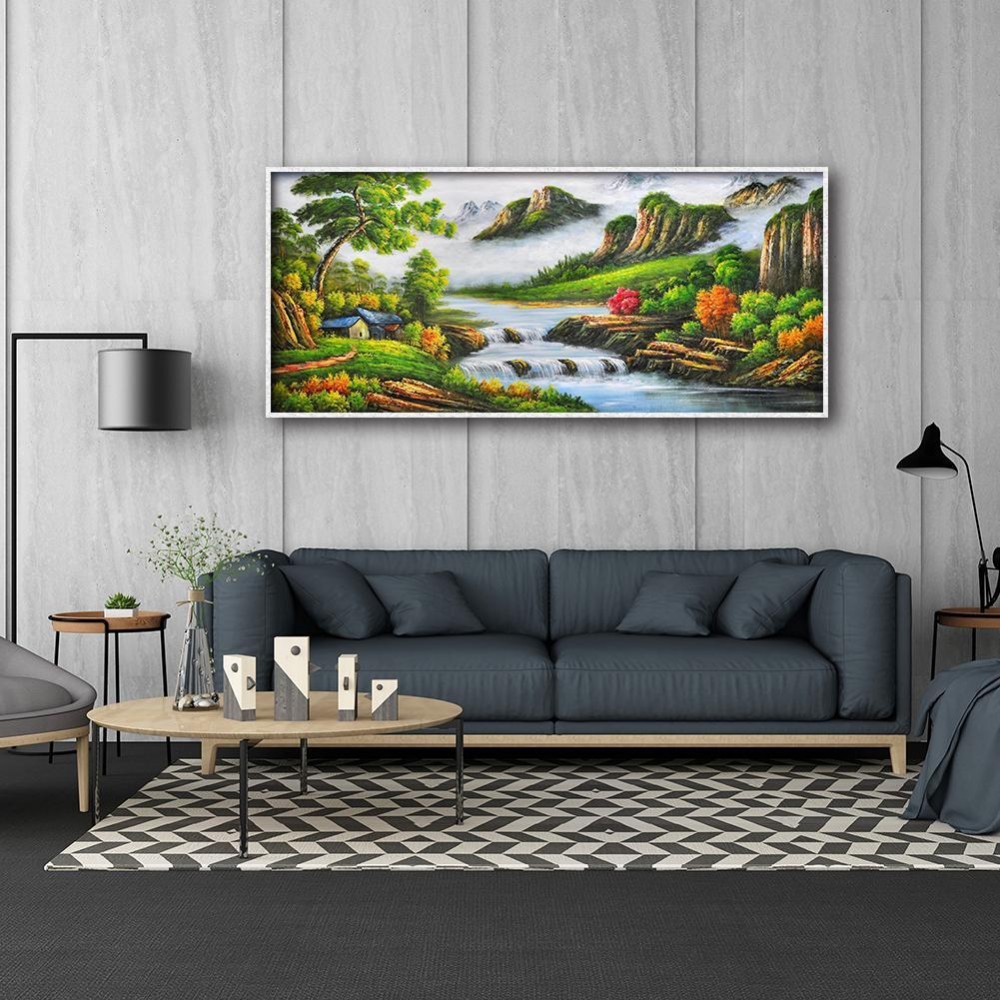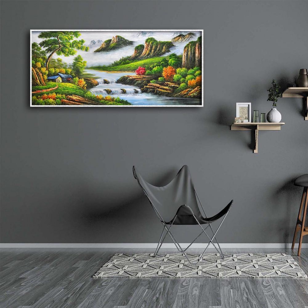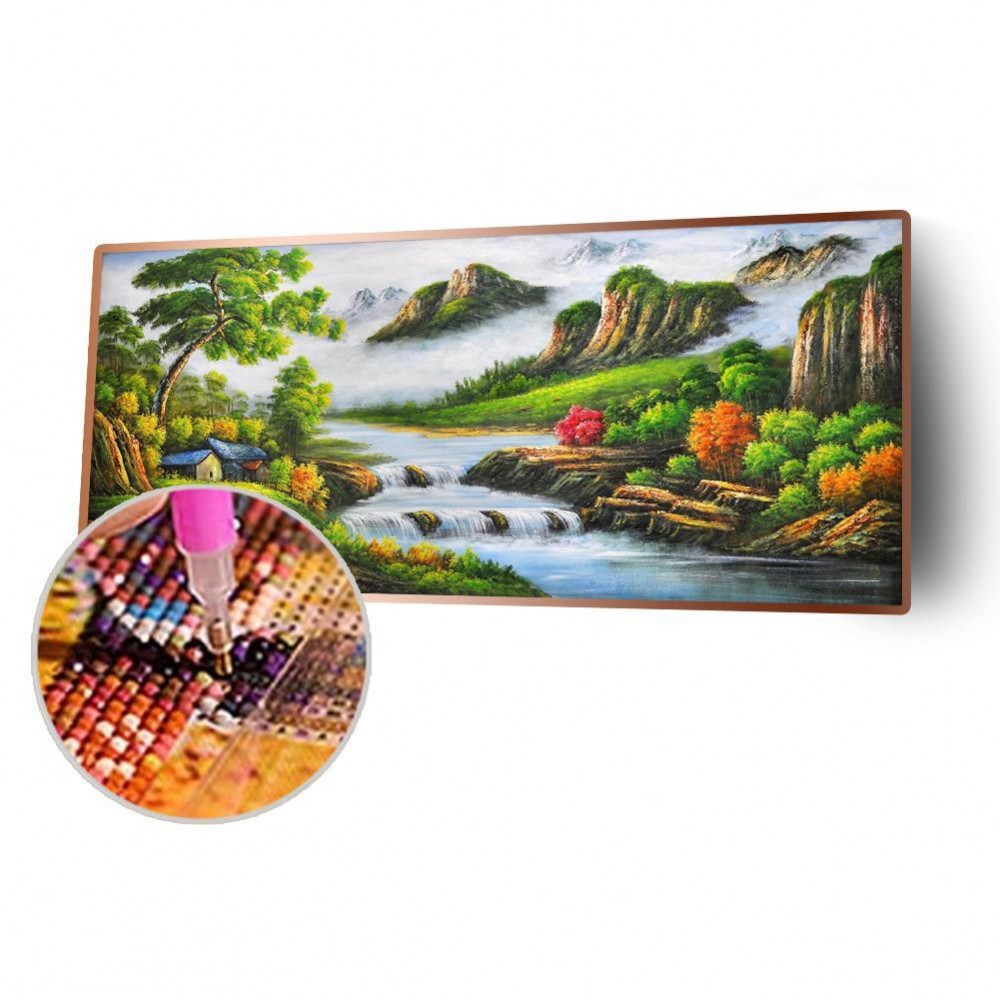 5D DIY Full Drill Round Diamond Painting Mountain Stream Cross Stitch Embroidery Mosaic Kit Home Decor Needlework
