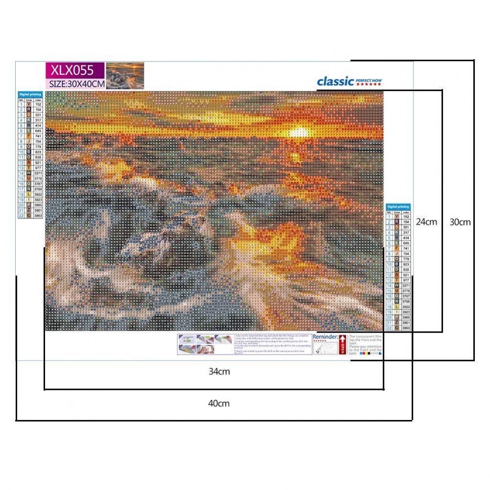 16x12 inch 5D DIY Full Round Drill Diamond Painting Sunrise Sea Wave Mosaic Wall Art Picture of Rhinestone Kit Home Decoration