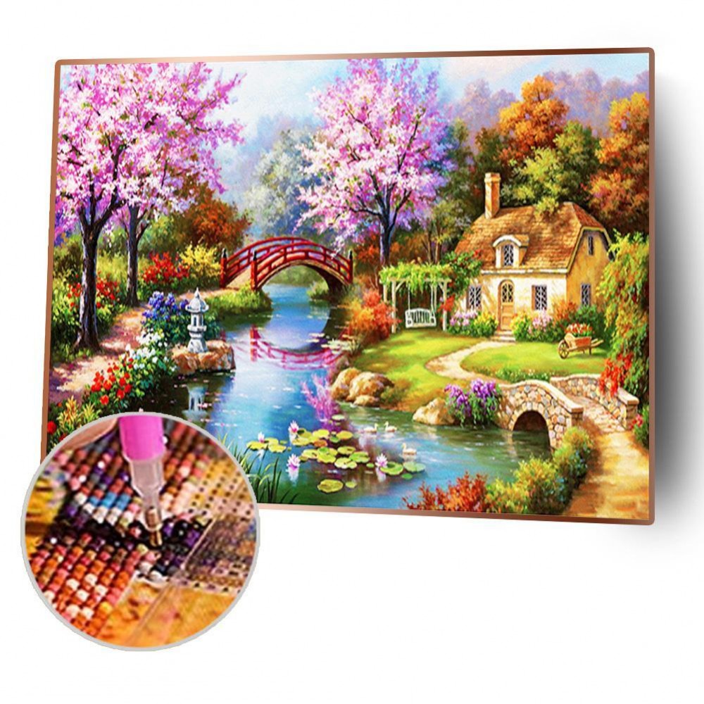 Spring Bridge 5D DIY Square Drill Diamond Painting Embroidery Mosaic Cross Stitch Full Rhinestone Craft Wall Art Picture Home Decoration