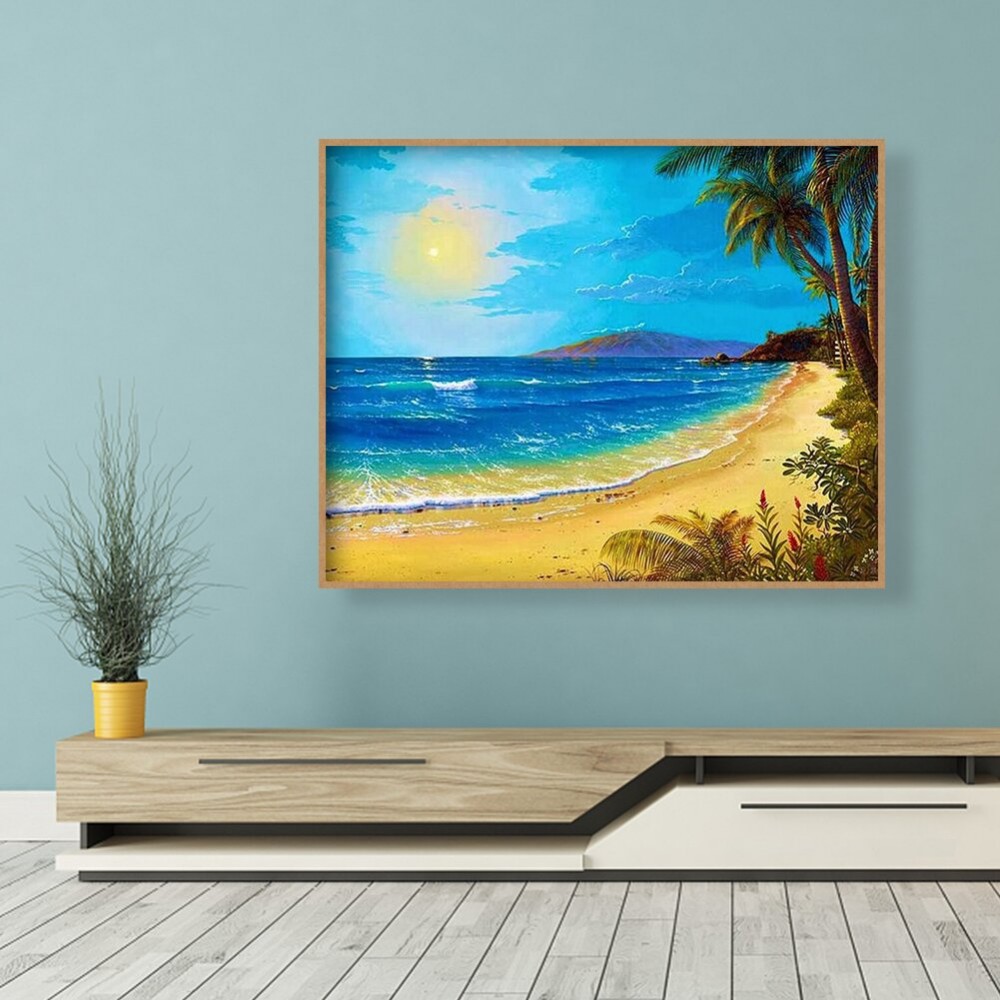 5D DIY Full Drill Round Diamond Painting Sunny Beach Diamond Embroidery Mosaic Kit Home Decor for Bead Art Wall Gift