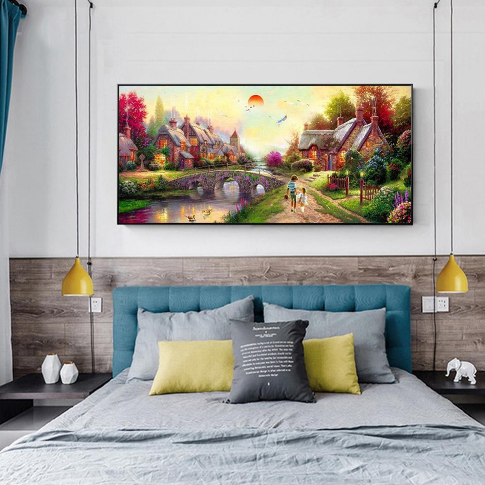 32x18 inch 5D DIY Diamond Painting Sunset Stone Village Full Round Drill Picture of Rhinestone Embroidery Mosaic Cross Stitch Kit Home Decoration
