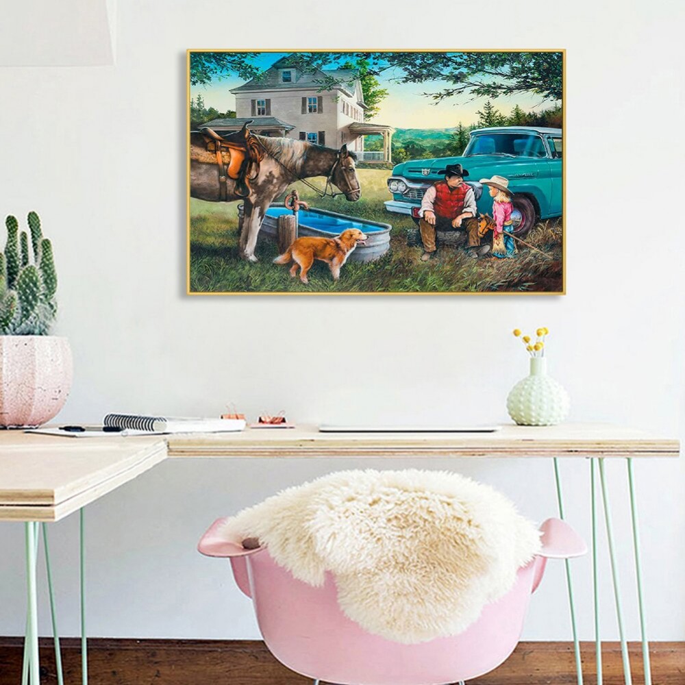 5D DIY Full Drill Round Diamond Painting Village Outing Diamond Embroidery Mosaic Kit Home Decor for Bead Art Wall Gift