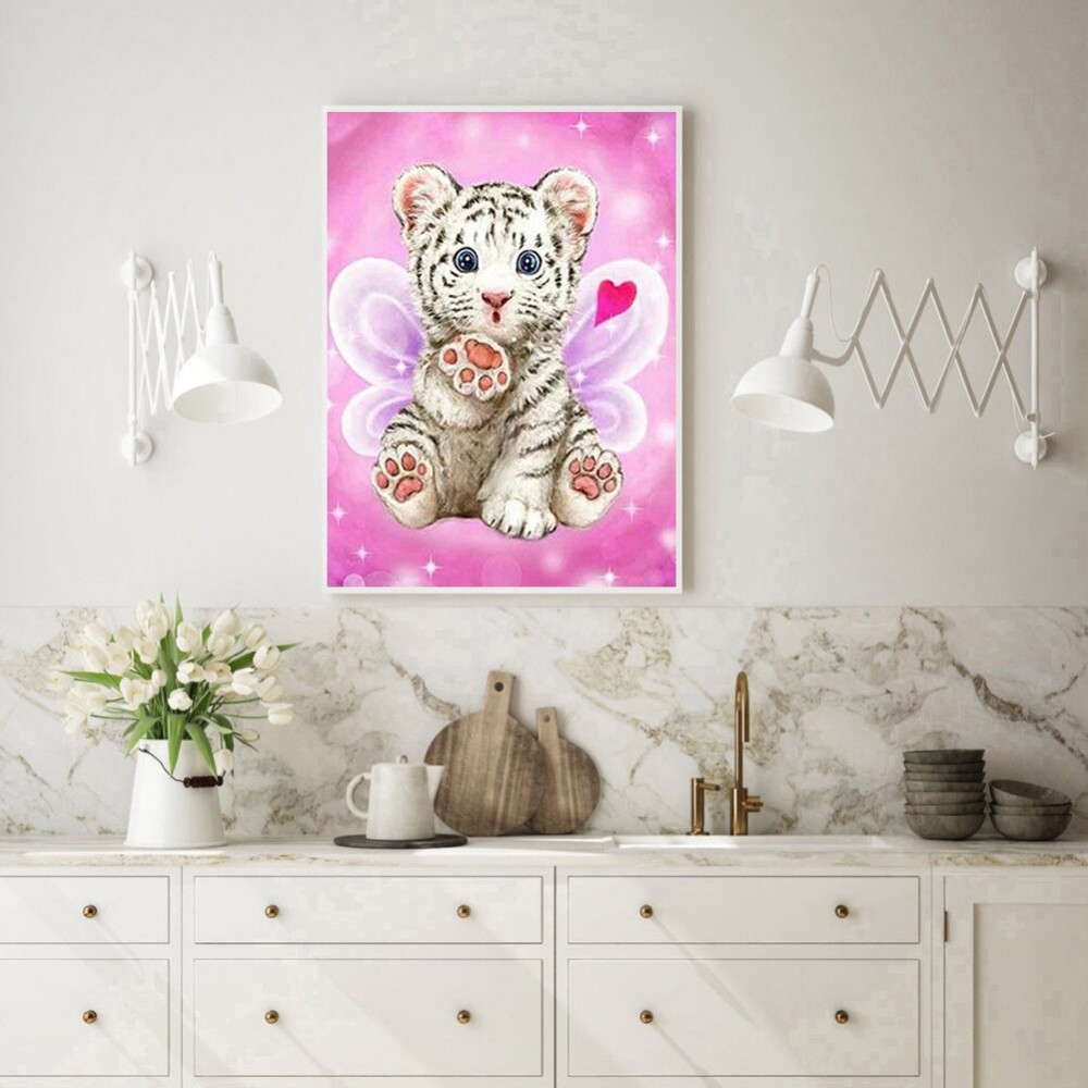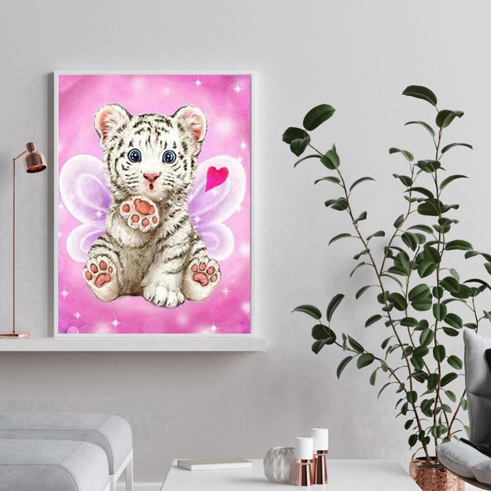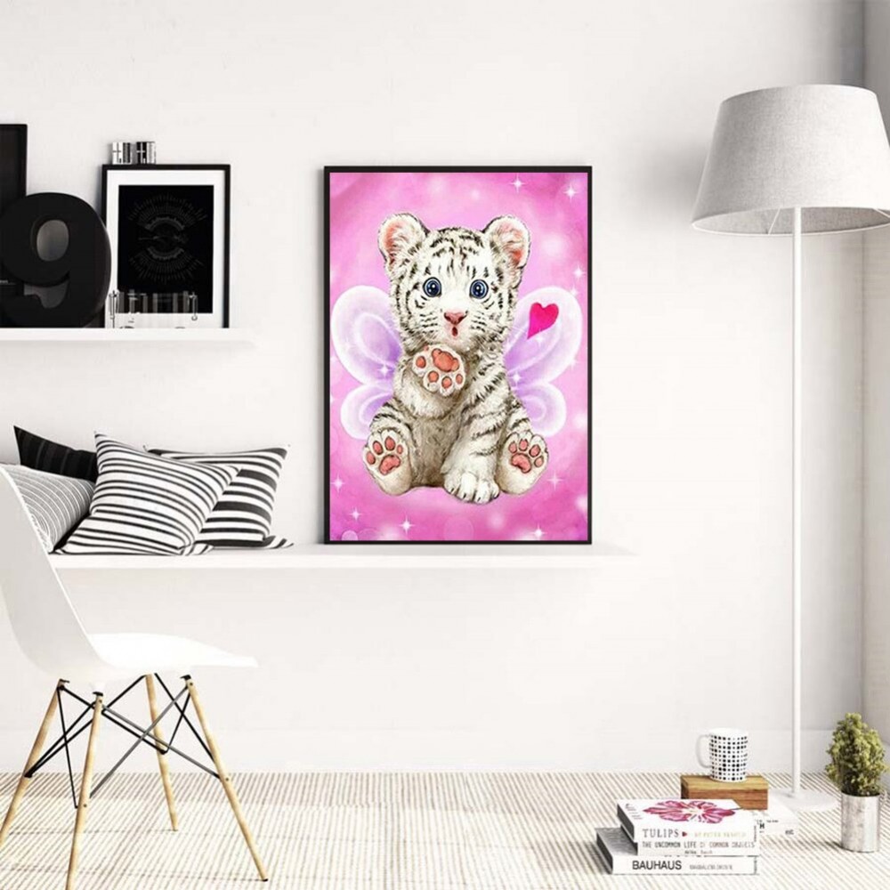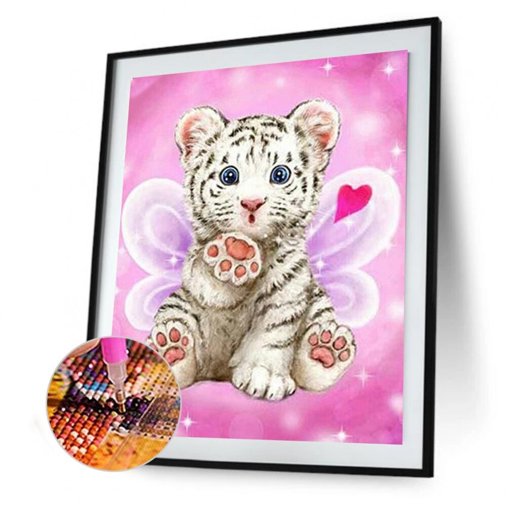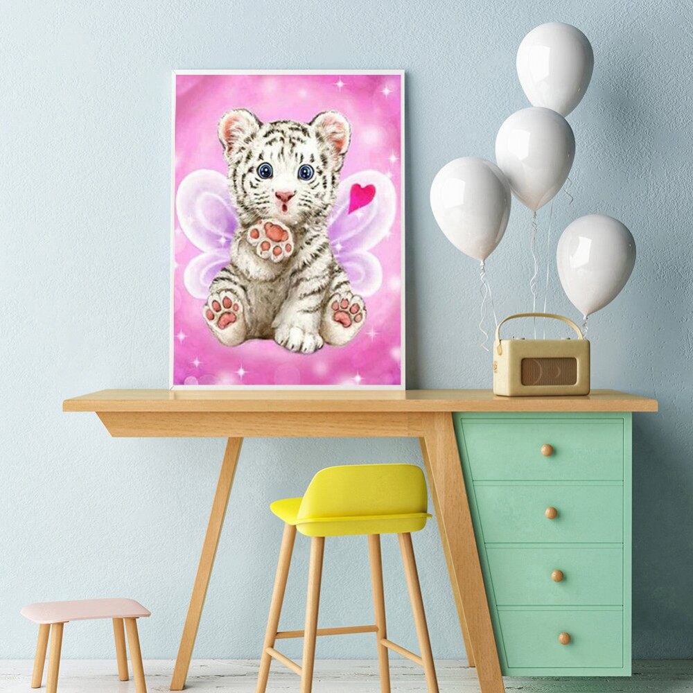5D DIY Full Drill Round Diamond Painting Cartoon Tiger Diamond Embroidery Mosaic Kit Home Decor for Bead Art Wall Gift