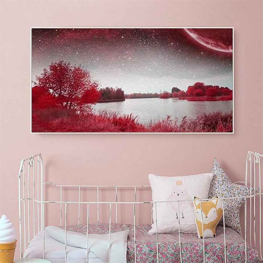 5D DIY Full Drill Round Diamond Painting Night River Diamond Embroidery Mosaic Kit Home Decor for Bead Art Wall Gift